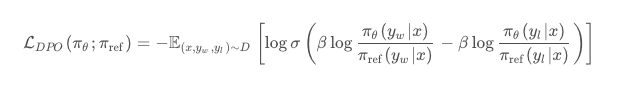 故而 DPO 的损失函数为: