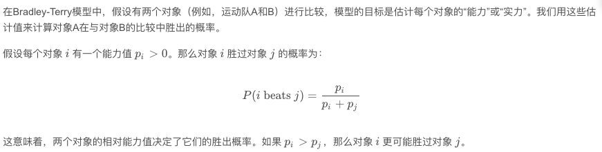 首先看 Bradley-Terry 模型定义: