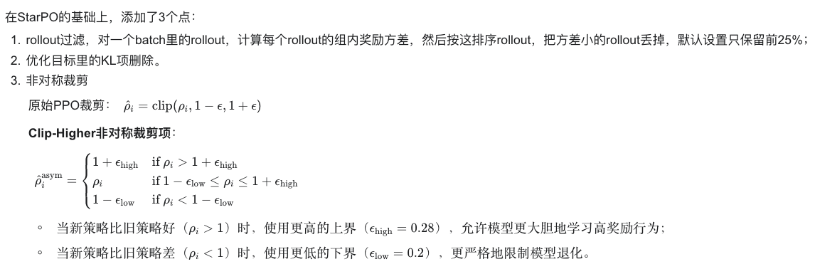 每步更新,会有很多 prompt,每个 prompt 会产生 n 个回复,得到 n 个奖励;每个 prompt 产生的记做一组 rollout,计算每组 rollout 的奖励方差,只保留 p% 高方差奖励的 rollout。