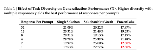 **实验现象:**在前两个游戏中,是 respnse per prompt 越小越好,但是 FrozenLake 不是