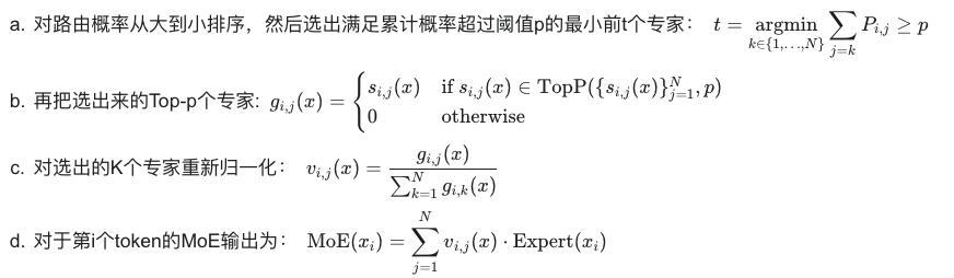 方案:北京大学王选研究所 ➡️ 提出 Top-P 的方式,只要求选择的专家概率值总和高于阈值 p 即可,这样对于简单问题,会选择个数少的专家;对于复杂问题,则会选择更多专家。