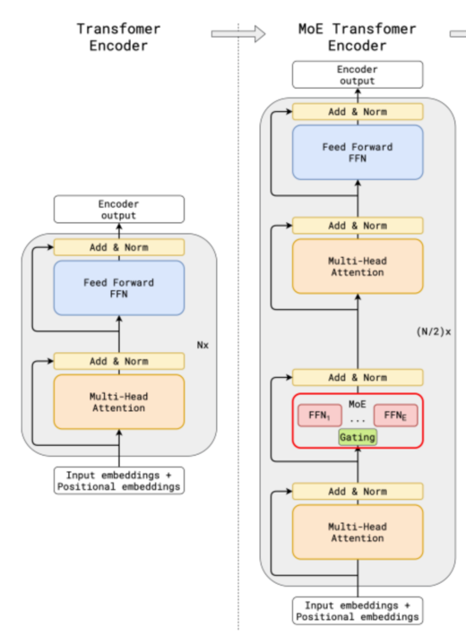 - Switch Transformer:Switch-Base(128 专家,k=1 路由), Switch-Base+ 是将每个专家参数增大,使得计算速度接近 MoE-Base。