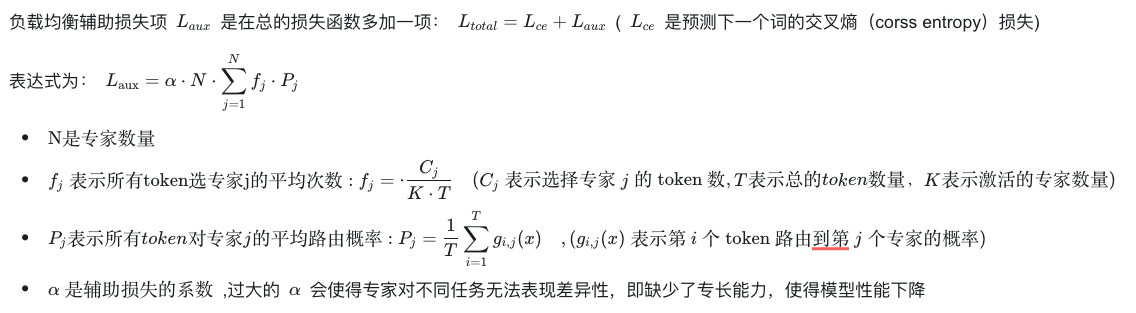 - 使用负载均衡辅助损失项(LBL),约束每个专家被选择的概率接近。